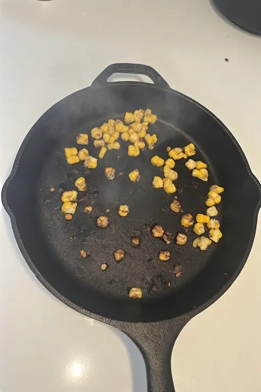 The corn didn’t char. The pan wasn’t hot enough or the corn was too wet. Use a bone-dry cast iron on the highest heat and pat frozen corn dry before adding to the pan. And most importantly — don’t stir it for the first 2 minutes.