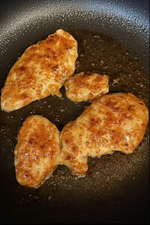 Heat olive oil in a large skillet over medium-high heat until shimmering. Add the chicken and sear undisturbed for 5–6 minutes until a deep golden-brown crust forms. Flip once and sear another 4–5 minutes until cooked through. The chicken should be fully cooked to 165°F before the sauce goes in. Remove from the skillet and set aside — the pan stays on the heat.